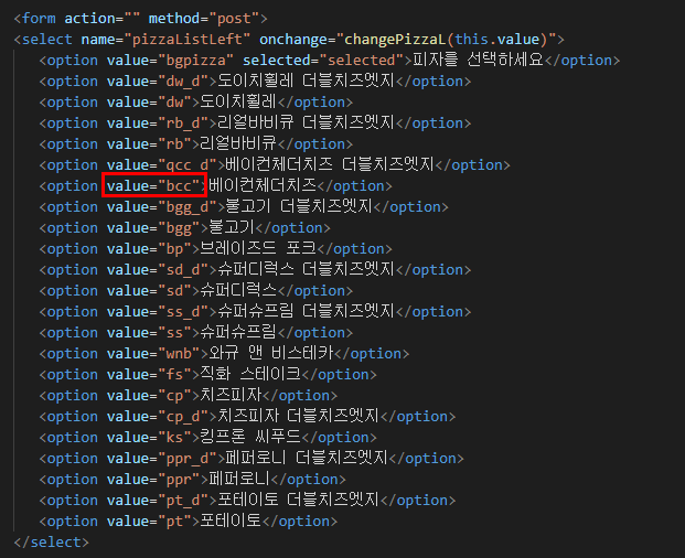 <option value="cp_d">치즈피자 더블치즈엣지</option>
