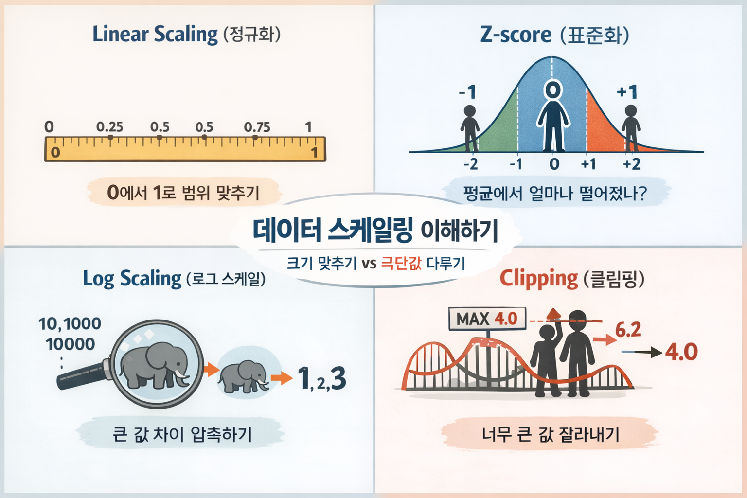 Linear, Z-score, Log Scaling, Clipping 쉽게 이해하기