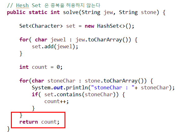 stonChar의 문자가 set에 존재하니?