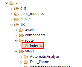 VueJS 의 router 폴더의 index.js 에서는 router 를 지정해준다.