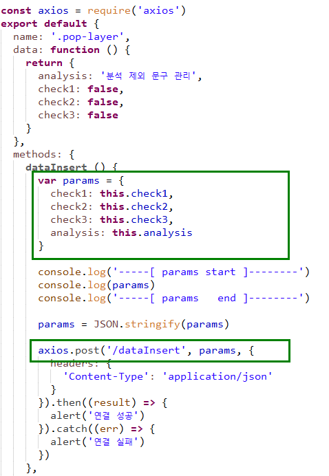 사용자의 정보를 입력 받아 Insert 하는 과정을 axios 를 이용해서 시도 했는데