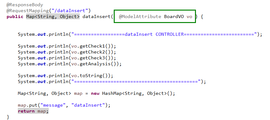 @ModelAttribute 를 이용해서 data 를 전달 받으려고 했지만