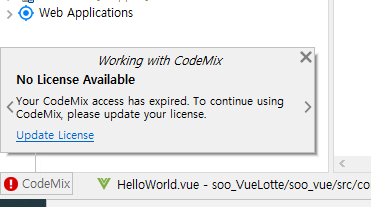 CODEMIX 의 탓 같아서 삭제를 하고 다시 다운로드 했다.