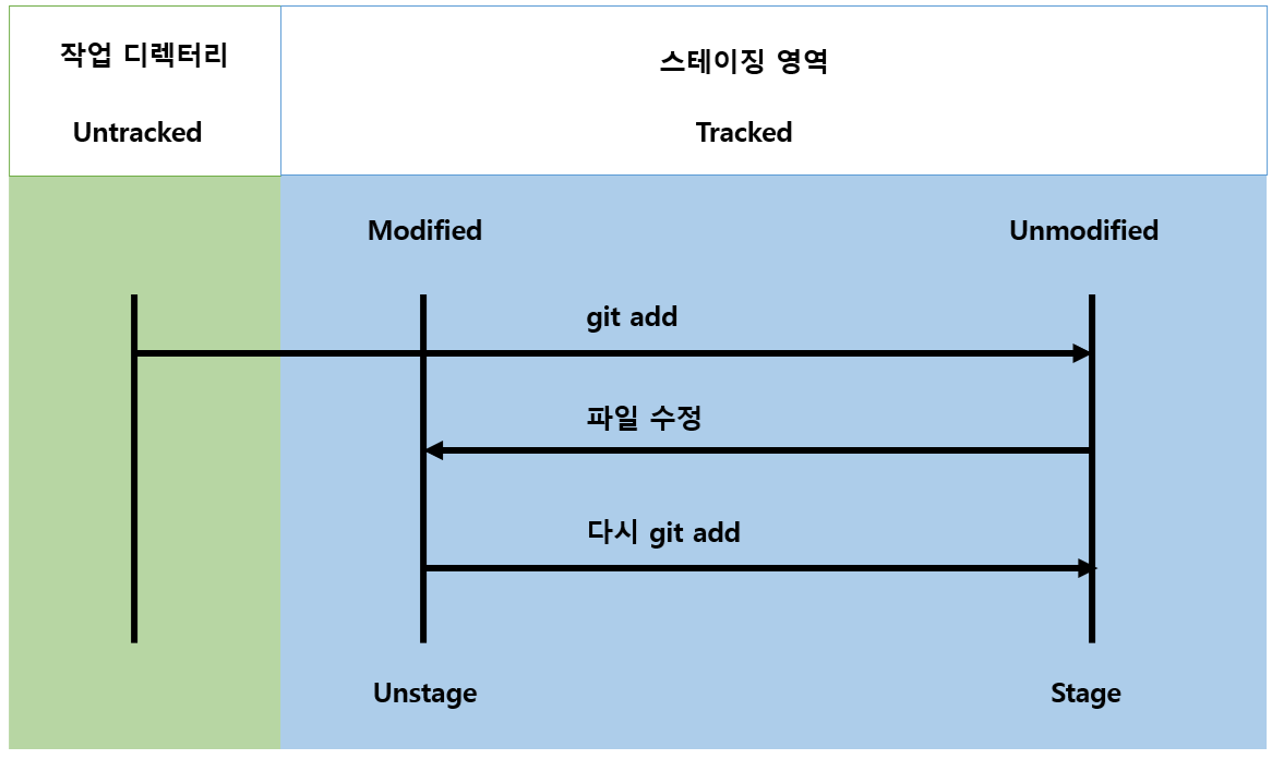 Stage 상태는 Tracked 상태와 Untracked 상태로 분류 할 수 있지만 같은 의미라고 생각하면 됩니다.