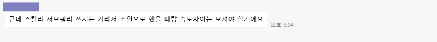 "스칼라 쿼리 쓰는 부분 속도 고려하셔야 할꺼에요!"